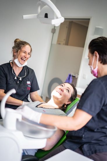 Ob am Empfang, am Behandlungsstuhl oder im Hintergrund – bei uns läuft nichts alleine. Was uns verbindet? Ein gemeinsames Verständnis von guter Zusammenarbeit, Verlässlichkeit und einem ocenen Umgang – mit unseren Patientinnen und Patienten genauso wie untereinander.